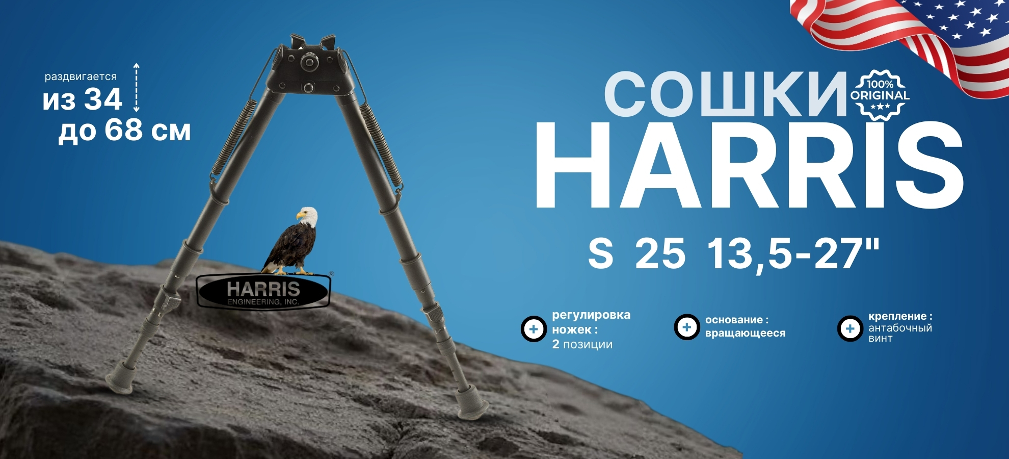 Сошки Harris, серия S, модель 25 (13,5–27" / 34–68 см)