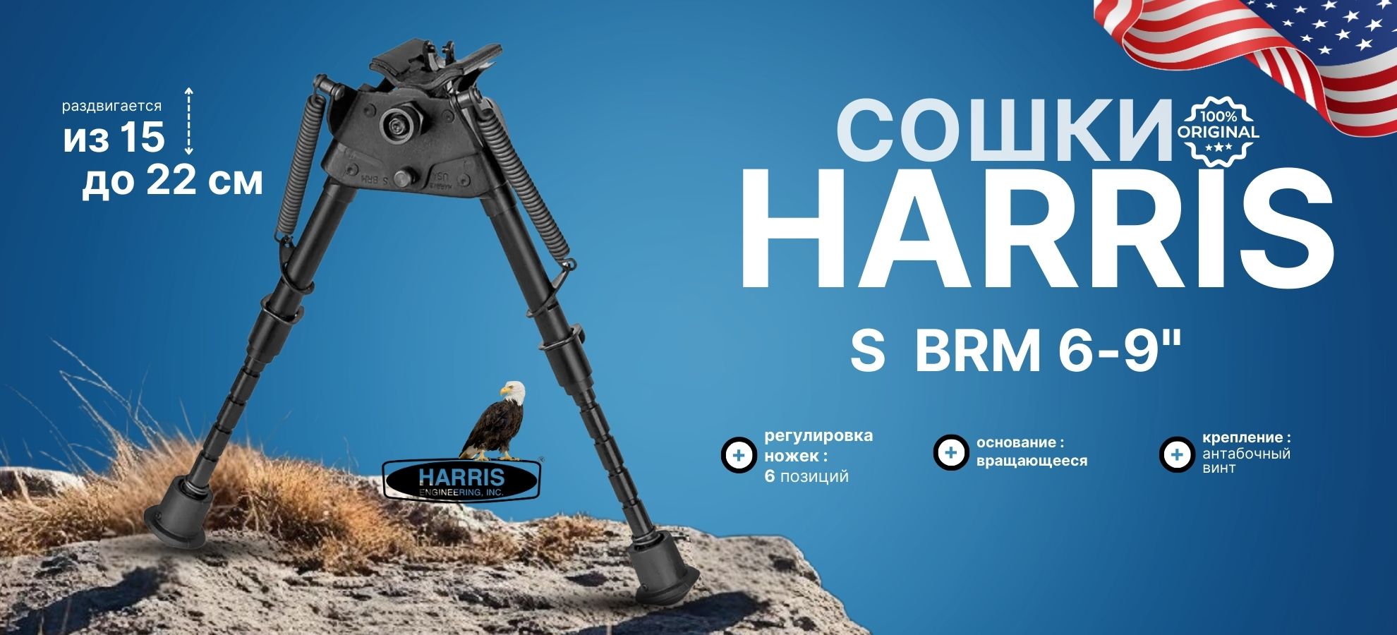Сошки Bipod Harris серия S (на вращающемся основании), модель BRM 6–9", 6 позиций